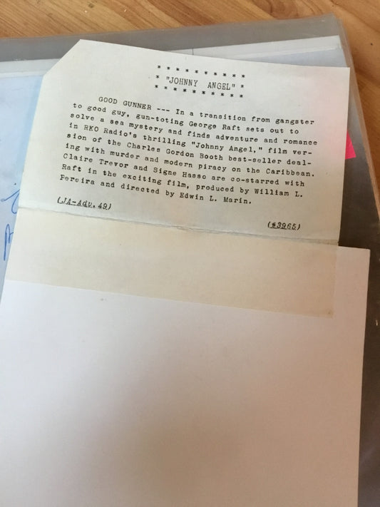 George Raft from JOHNNY ANGEL autograph