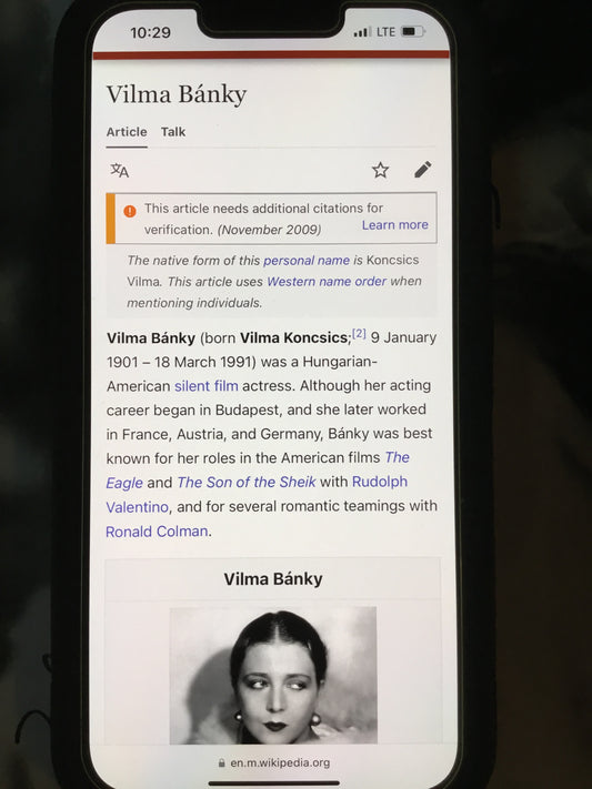 Vilma Banky SON OF THE SHEIK autograph