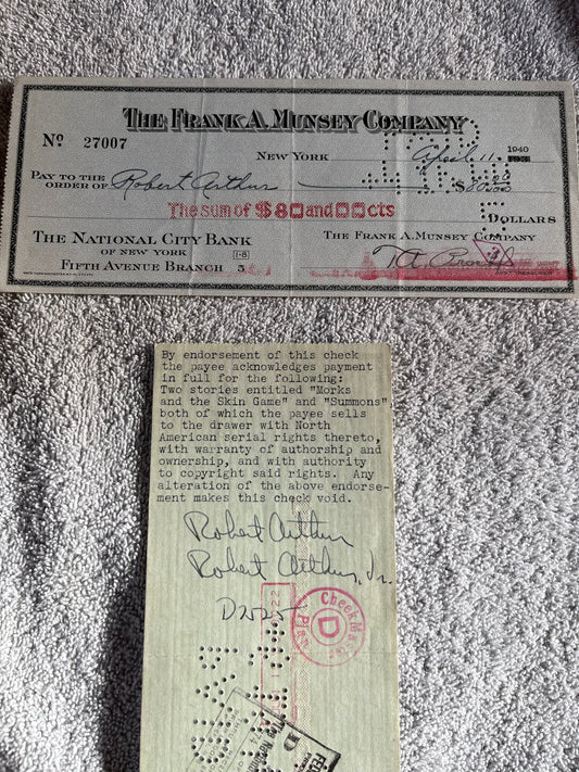 ROBERT ARTHUR of THE MYSTERIOUS TRAVELER (autographed checks)